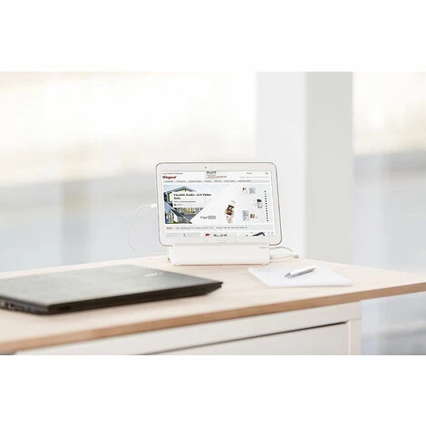 3-Steckdosenleiste mit integriertem Tablet-Ständer und Smartphone-Ladestation mit 2 USB-Anschlüssen, Ein/Aus-Schalter, 1,5 m Kabelverlängerung, 230 V, Farbe White – Legrand 694810.
