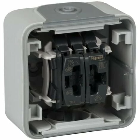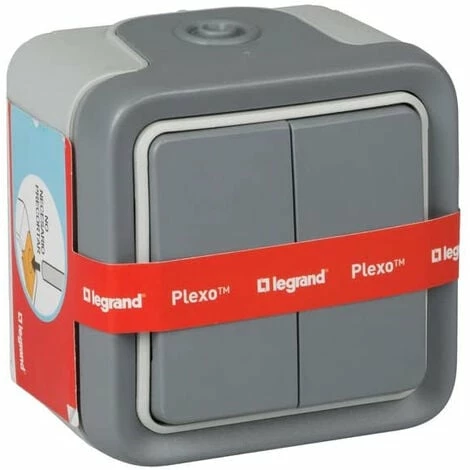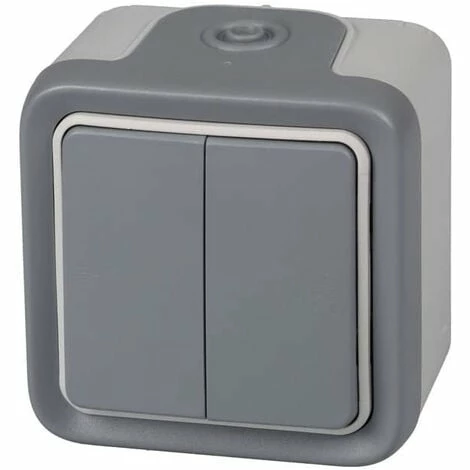 Doppelter Wandschalter, wasserdichter Aufputz-Taster aus der Serie Plexo, doppelter Außenschalter, wasserdicht (IP55), grau – Legrand, 191514 Plexo.