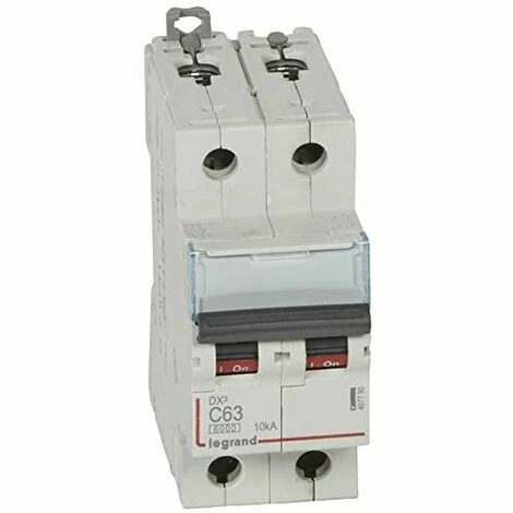 Legrand Leistungsschalter DX 6000 10kA kommt hoch an und geht niedrig Schraube, 2P, 230V~ 400V~, 63A, Kurve C, 2 Module.