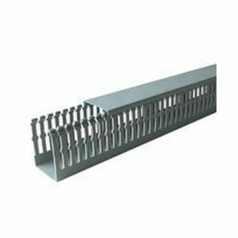 Channel TABLE 60×120 perforiert. Perforierte Wände – Gemäß der Norm UNE-EN 50085-2-3 – PVC M1 graue Farbe RAL 7030 – Seitliche Perforationen mit einem Abstand von 10 mm – Länge: 2 m – Höhe: 60 mm – Breite: 120 mm. Kanäle für PVC-Box.