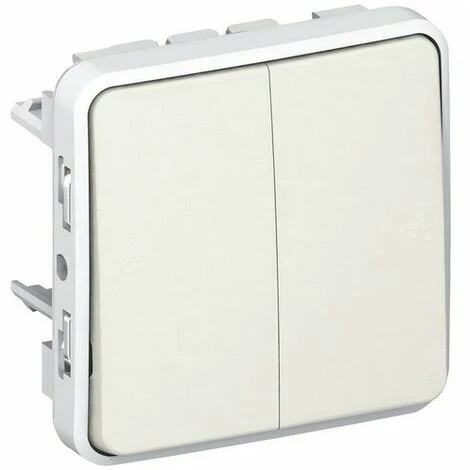 Doppelschalter PLEXO I/O weiß. 10 AX Schalter – 250 V – IP 55 – IK 07 Doppelschalter – Weiß. Plexo – IP 55 wasserdichte Mechanismen – zusammensetzbar – Schalter, Taster und automatische Schalter – Die Mechanismen werden mit einer fertigen Front geliefert – Installation mit Straßenkappen oder mit zurückgesetzten Trägerplatten – Automatische Anschlüsse.