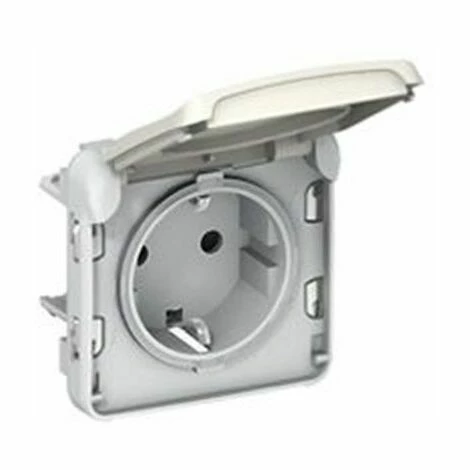 2-polige Buchse+Masse PLEXO I/O weiß. Stromsteckdosen 16 A – 250 V~ – Mit seitlichem Erdkontakt 2P+E Schraubklemmen – Weiß. Plexo – IP 55 wasserdichte Mechanismen – zusammensetzbar – Stromsteckdosen und Differenzialsteckdosen – Die Mechanismen werden mit fertiger Front geliefert – Montage mit Straßenkappen oder mit eingelassenen Trägerplatten.