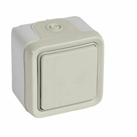 Weißer PLEXO MBLOC Flächenschalter. 10 AX Schalter – 250 V – IP 55 – IK 07 – Automatische Klemmenverbindung – Schalter – Weiß. Plexo – IP 55 wasserdichte Mechanismen – Monoblock – Aufputz – Schalter, Drucktasten und automatische Schalter – Lieferung komplett mit 2 Kegeln – Platte ohne Befestigung.