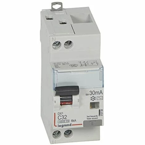 legrand dx 410708: differenzialschutzschalter 32 amps c-kurve 6 ka 30 ma typ ac 2-polig (phase – neutral) mit eingang von der oberen schraube und ausgang von der unteren schraube. eigenschaften dieses legrand dx-differentialschutzschalters: ac-typ: erkennt fehler an wechselstromkomponenten. Polzahl: 2 (Phase + Nullleiter). Nachweisempfindlichkeit: 30 ma. Maximalstrom: 32 Ampere res. Kurve: c. Schaltleistung: 6…