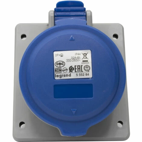 Quadratischer Sockel 32A 2 Pole+Erde 250V IP44. Sockel für Paneele mit einheitlichem Achsabstand
