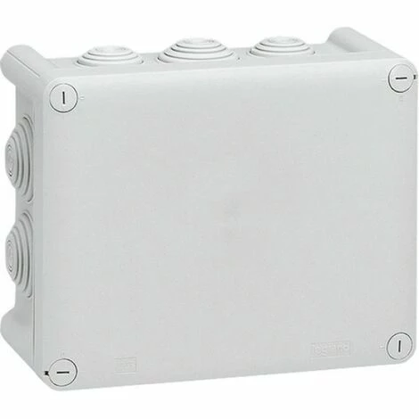 Plexo Nass-Abzweigdose, Schutzart:IP55. Rechteckig, Farbe: grau. Abmessungen:BxHxT:155x110x74mm mit Nippel.