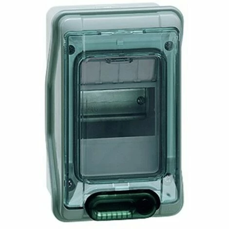 Feuchtraumverteiler Plexo³, Schutzart IP 65 – IK 09, 1-reihig, 4 Module/Reihe, Abmessung 200 x 128 x 115,6 (Höhe x Breite x Tiefe in mm), selbstverlöschend 650 °C, inklusive N- und PE-Klemmen, Aufputzverteiler Schutzklasse II. Türen transparent, beidseitig anschlagbar. Nach EN 62208, für den Bau von Installationsverteilern nach EN 61439-3.