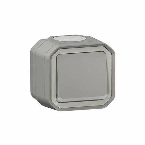 Beleuchteter Wechsler oder Schalter mit wetterfester Anzeige Plexo 10AX 250V~ IP55 IK08 komplette Aufputzmontage – grau