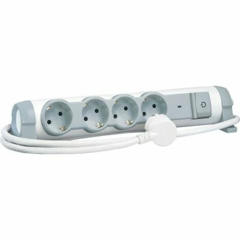 Tischverteiler drehbar und beleuchtetem Schalter EIN/AUS, für Wand- und Tischmontage, Überspannungsschutz mit LED Anzeige und einer abgesetzter Steckdose