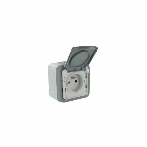 CEE 7/5-Aufputz-Steckdose mit Schutzabdeckung, 1 Abzweigung, 2 Ausgänge, Grau