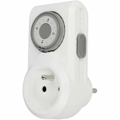 Programmierbare Steckdose mit täglichem Programm für den täglichen Gebrauch in Haushalt, Freizeit, Handwerk und Industrie. die Uhr ist mit undurchlässigen Segmenten ausgestattet. einfach zu bedienen und leicht verständlich von jedem.