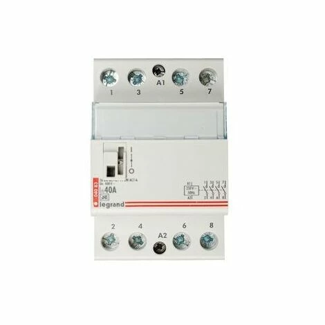 Silent Installationskontakt Legrand. Dieser Installationsschütz mit geringen Schalt- und Betriebsgeräuschen ist zum Schalten von Lasten wie Leuchtengruppen, Motoren und Heizungen bestimmt. Technische Eigenschaften: Folienspannung: 230 V~4 Pole400 V~3 Module Handschalter Anzeige eines optionalen HilfsschaltersAnzeige:Ersetzen: 04083