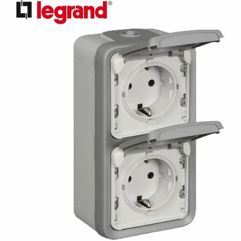 SCHUKO-Steckdose 2-fach, senkrecht, IP44, Feuchtraum Aufputz, Plexo 55, grau