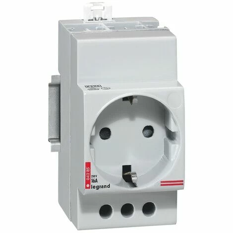 Steckdosen – Lassen Sie den Kamm durch und lassen Sie den Einspeisekamm (Eingang von unten) nach einem unipolaren + neutralen Schutzschalter 10/16 A – 250 V ~ – 2P + T mit Klappen – Anzahl der Module: 2 , 5