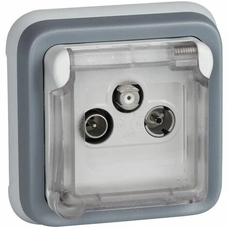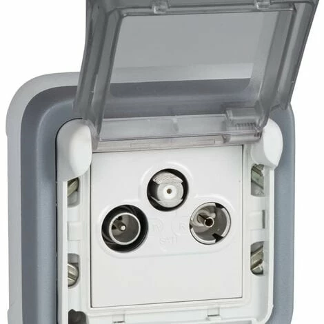 TV-Steckdose, TV-Antennensteckdose für Unterputzmontage, Serie ‘Plexo’, Farbe grau, wasserdicht (IP55) – Legrand, 191516 Plexo.